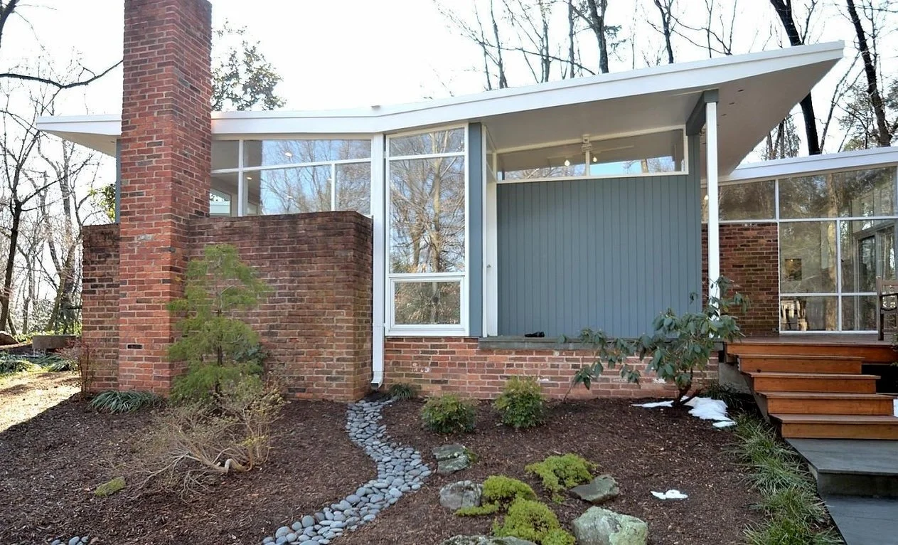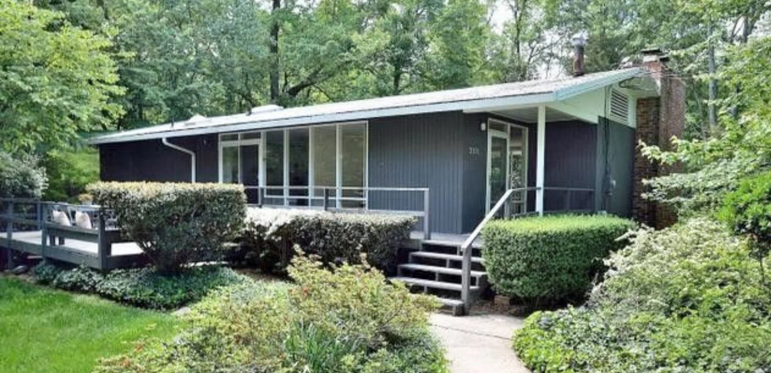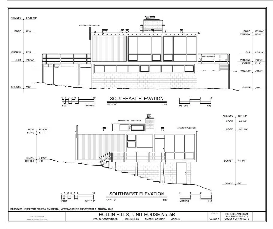 The first one built can be seen at 7300 Rippon Road, and many of the Type 1 houses and their variations were built near the intersection of Rippon Road and Drury Lane, the first part of Hollin Hills to be developed.