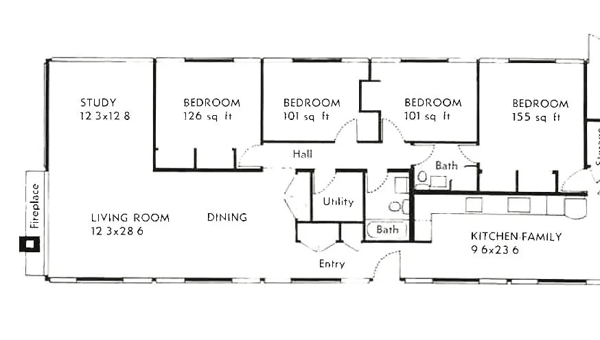 The changes in length were made in four-foot increments, each adding 100 square feet of floor space to the house. The houses could be expanded up to 54’ in length, from the original 46’.