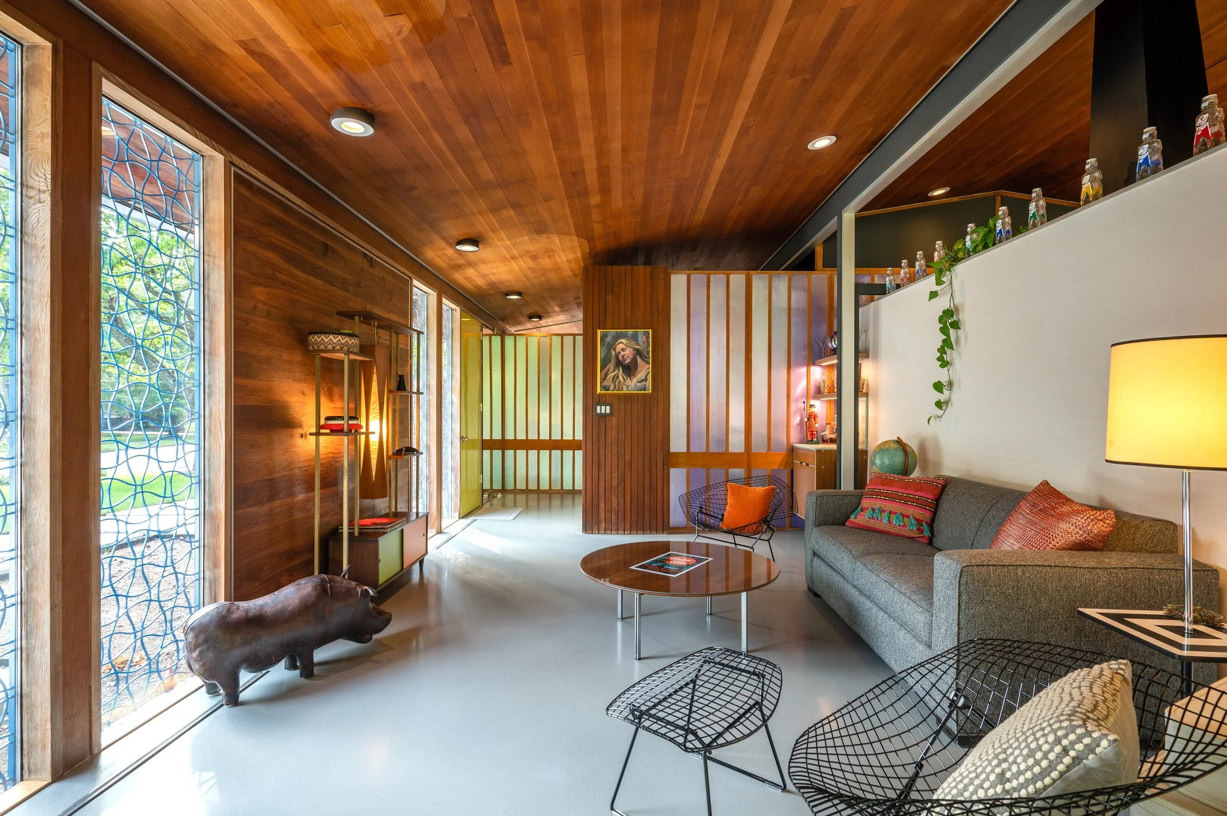 Davenport described the Type 1 as being designed in “tomorrow’s vernacular,” and their innovative low-sloped roofs, siding of redwood or fir, and banks of floor-to-ceiling windows gave the houses what was, at the time, a strikingly modern look.