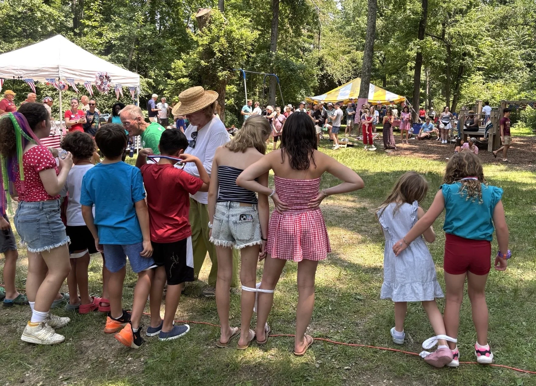 It wouldn’t be the 4th of July without patriotic music, and the Mount Vernon Band (newly positioned in the heart of the park rather than at the fringes, which makes sense!) provided a rousing soundtrack for the picnic. Sean Vann and Frank Collins led the fiercely-fought egg toss, three-legged race and tug-of-war, while those of a more meditative nature could enjoy a gentle pony ride in McCalley Park. And, of course, there was the cherished Hollin Hills pastime of just getting caught up with old friends. A great afternoon — many thanks to all the volunteers who brought it off to perfection!